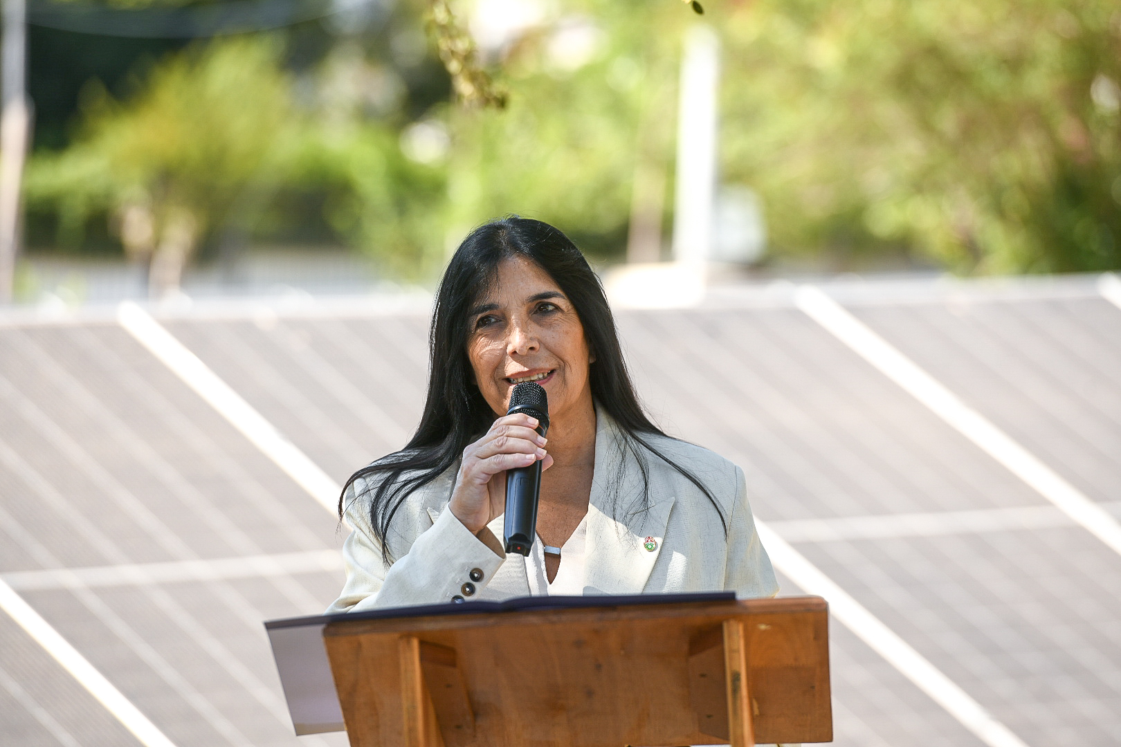 La vicegobernadora Alicia Aluani junto al intendente de Colón, José Luis Walser, encabezaron el acto de inauguración del Parque de Energía Solar Fotovoltaica de la ciudad.