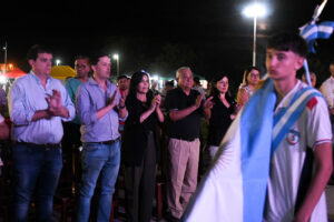 En tanto, el presidente y apoderado legal del Círculo Policial Nogoyá, Martín Motroni, dio la bienvenida y agradeció la presencia de todos, especialmente, de la vicegobernadora Aluani. En su alocución, también recordó a “dos grandes colaboradores que se nos fueron: Jorge Alfaro y Mario Lupi”. Luego, destacó el esfuerzo y el crecimiento de la comunidad educativa y valoró el trabajo en equipo que se realiza para llevar adelante las tres noches del festival.