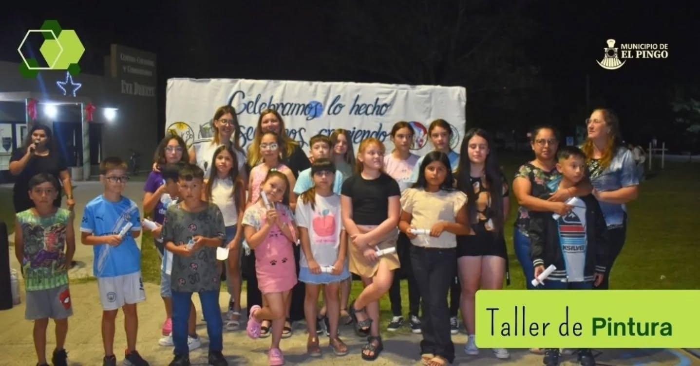 Además, desde el Municipio de El Pingo se impulsaron los talleres de Gimnasia, Mini Vóley, Maxi Vóley, Vóley Juvenil, Iniciación Deportiva y Newcom, Aprender Jugando, Educando en Movimiento (Instituto Becario), Manos Unidas, Taller de Pintura, Taller de Radio y Taller de Peluquería, fortaleciendo espacios de aprendizaje, contención y participación para todas las edades.