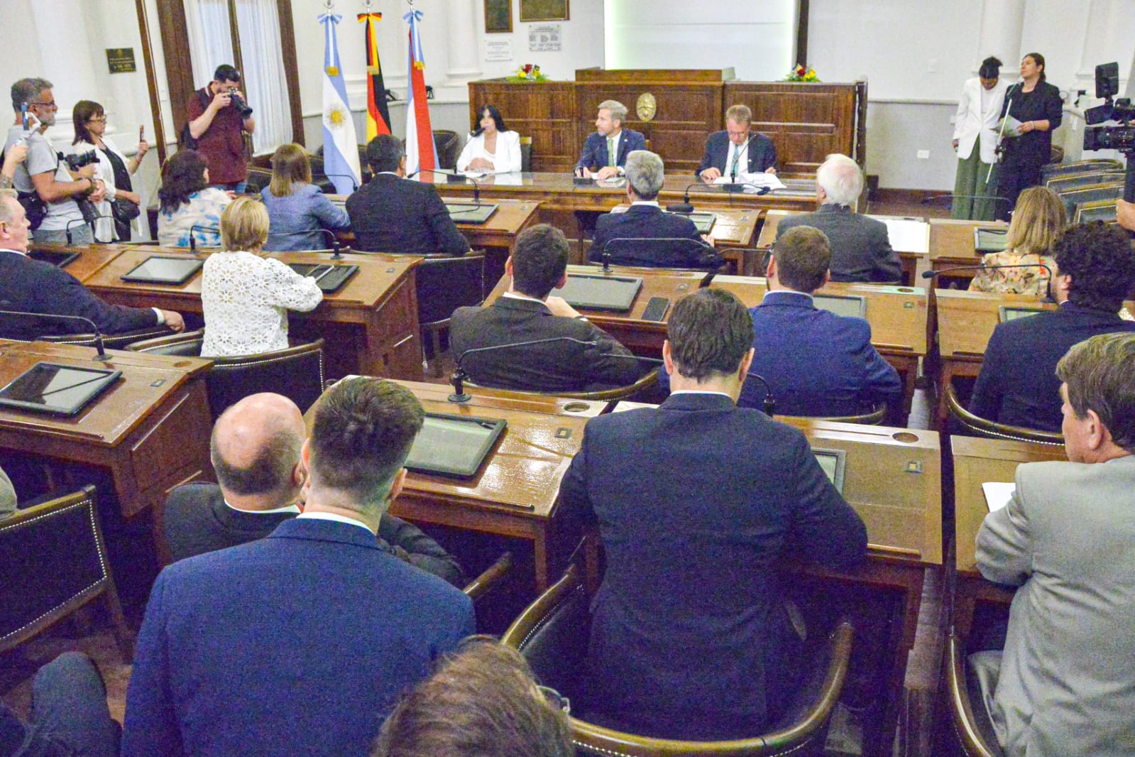 Acompañaron al embajador de Alemania en Argentina, representantes de Estado de Baviera, la Federación de Asociaciones Argentino Alemana y la Fundación Verbundenheit. En la ceremonia también estuvieron presentes los senadores Gustavo Vergara, Nancy Miranda y Gloria Cozzi; el secretario y coordinadora de la Honorable Cámara de Senadores, Sergio Avero y Julieta Sosa. Participaron, además, los ministros de Desarrollo Económico, Guillermo Bernaudo, y de Hacienda y Finanzas, Fabián Boleas; y los secretarios de Modernización, Emanuel Gainza, y de Industria, Catriel Tonutti; entre otras autoridades.