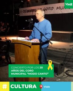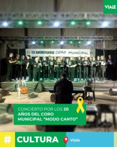 El domingo por la noche vivimos una velada especial: el Coro Municipal “Modo Canto” celebró sus 20 años de trayectoria con un concierto inolvidable.