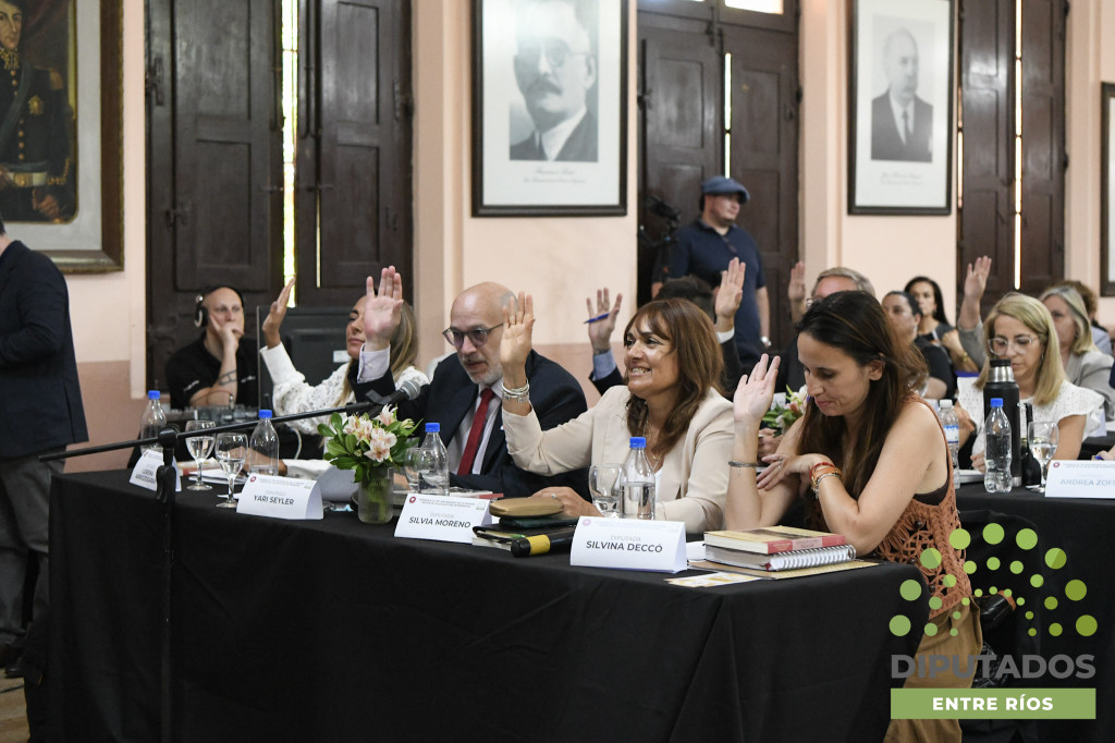 Además, se aprobaron sobre tablas, por un lado, el dictamen unificado por el que se adhiere a la Ley Nacional Nº 27.797, llamada ‘Ley Nicolás’, que establece protocolos de actuación para garantizar asistencia sanitaria, prevenir sucesos adversos, diagnósticos errados o ‘mala praxis’, y optimizar las condiciones de trabajo del equipo de salud. Luego, una Declaración de Interés, de autoría de la diputada Silvia Moreno, sobre la ‘2º Jornada Interprovincial sobre Desarrollo Infantil ¡Veo, Veo! ¿Qué ves? ¡Un niño creciendo!’, a realizarse el viernes 28 en la Facultad de Ciencias de la Salud, en Concepción del Uruguay.
