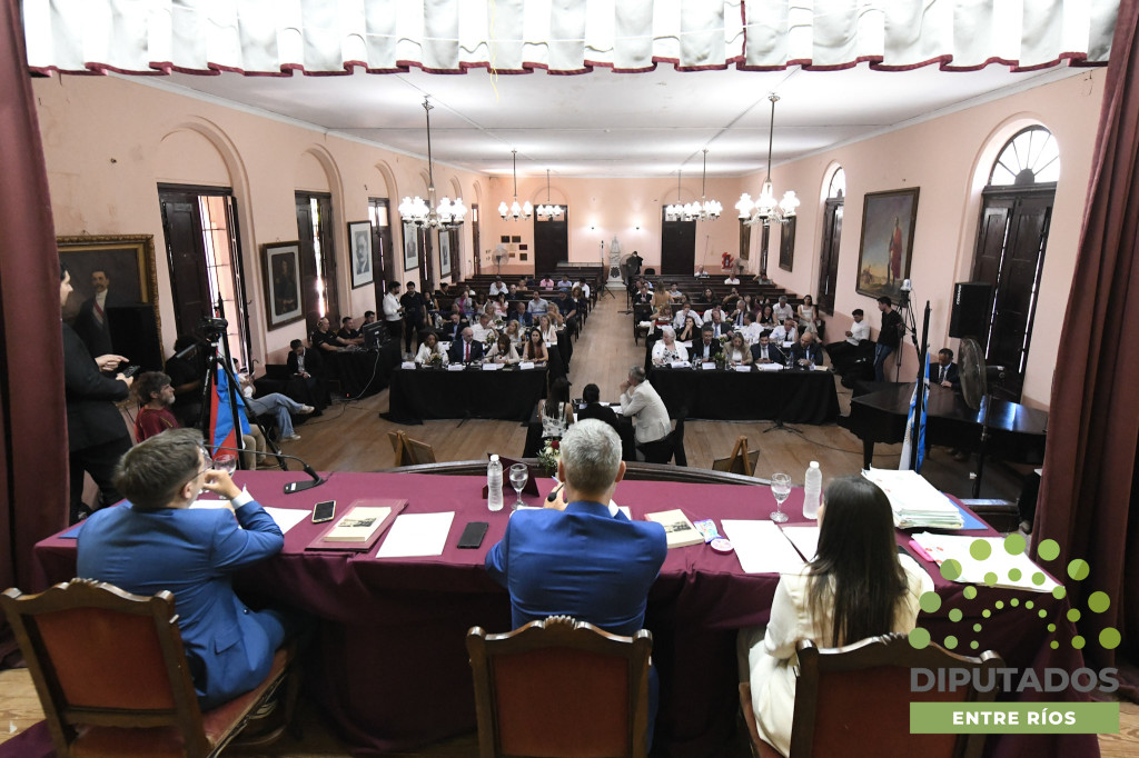 En la fecha, la Cámara de Diputados se ajustó al decreto Nº 187, de fecha 20 de noviembre de 2025, por el que se convocó a sesión especial a partir de las 13:30 en el Colegio Superior del Uruguay ‘Justo José de Urquiza’, de la ciudad de Concepción del Uruguay, a fin de aprobar los dictámenes en los expedientes Nº 28.221, 28.561, 28.596, 28.598 y 28.747, referidos a donaciones de muebles e inmuebles, el expediente Nº 28.847 de modificación del artículo 19º de la Ley Nº 11.202, de creación de OSER, que ordena la situación de aquellos afiliados pasivos que durante su vida activa aportaron a mutuales municipales y comunales, así como el expediente Nº 28.263 que declara como ‘Ciudadano Ilustre’ al profesor Celomar José Argachá.
