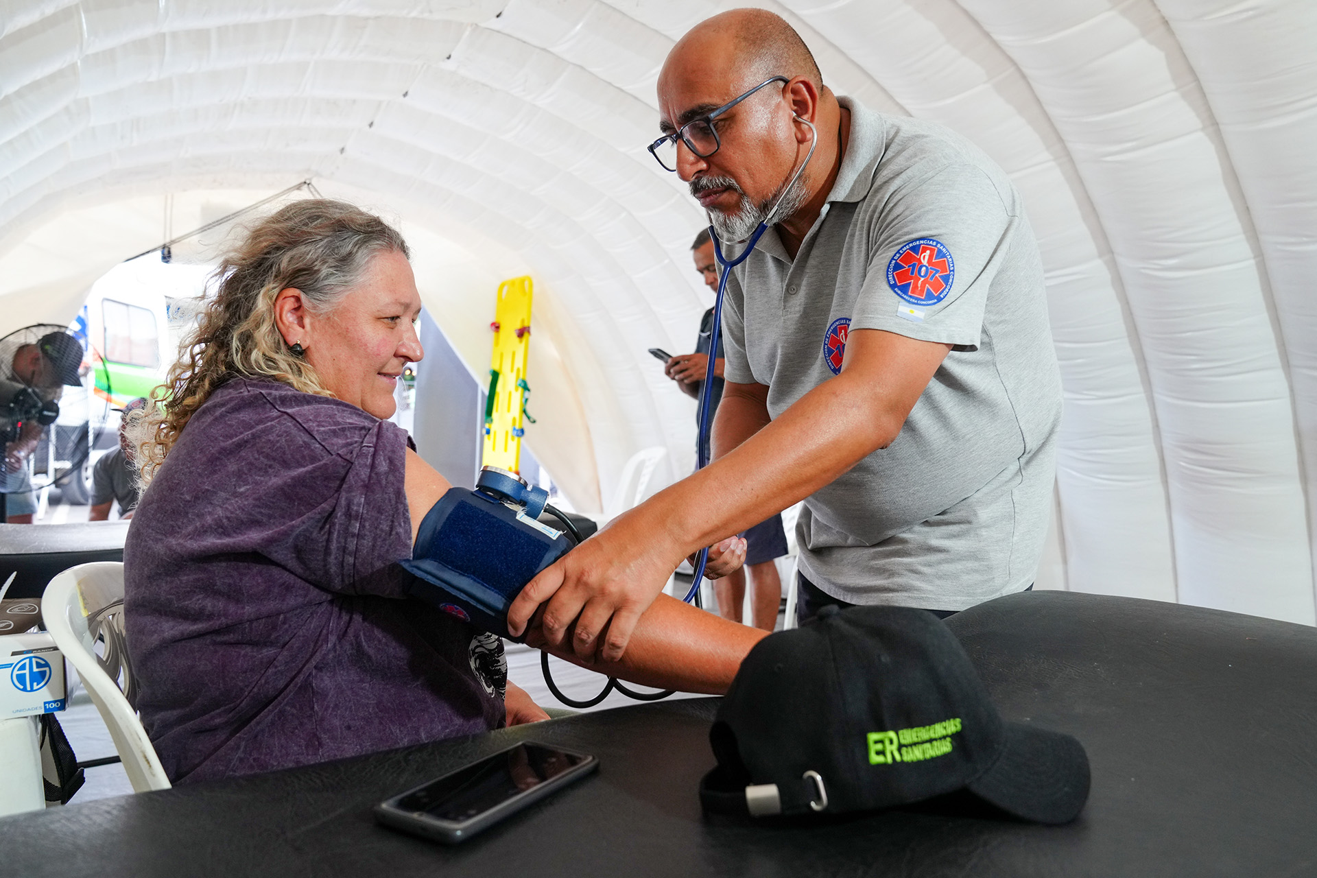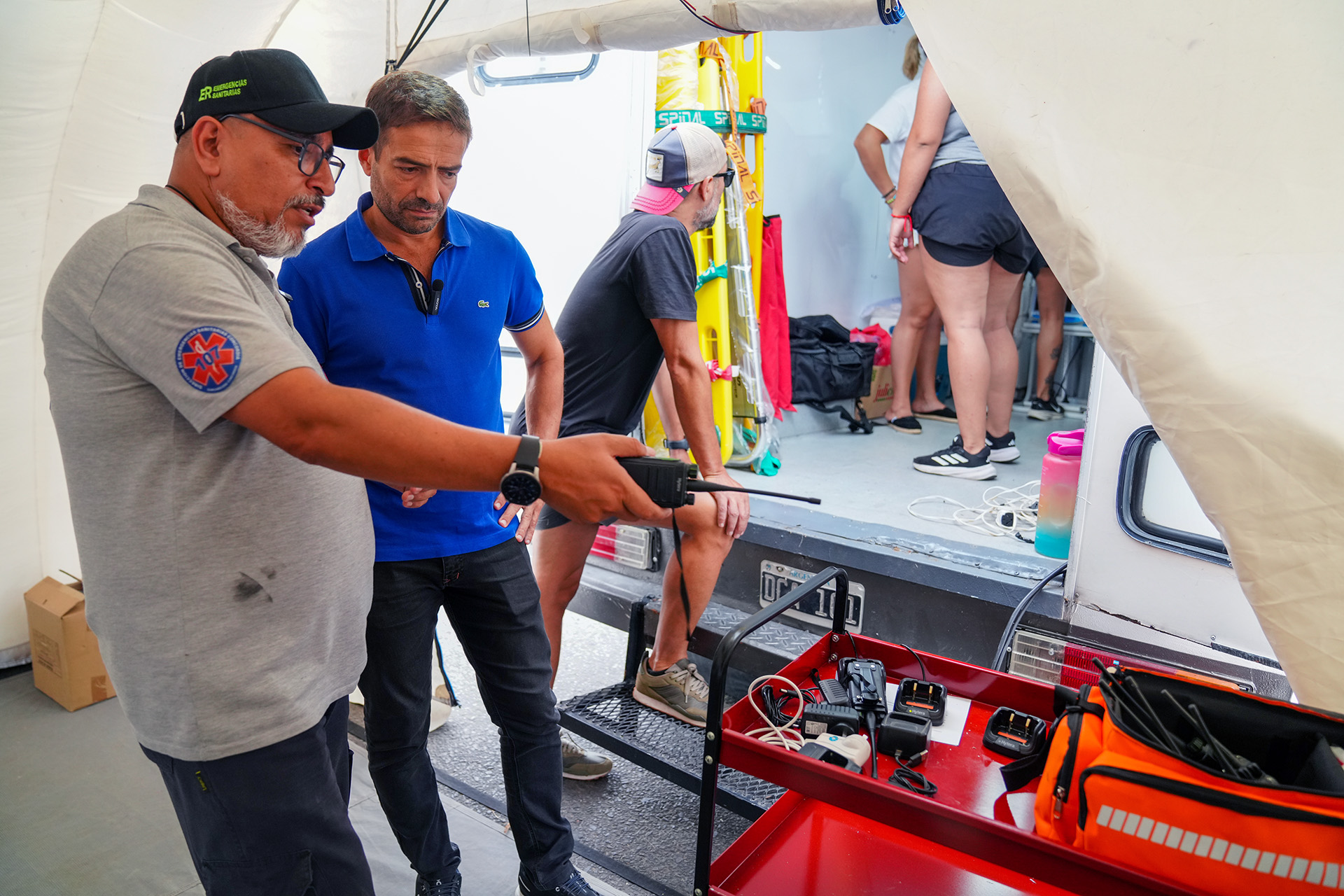 En el caso de los recursos dispuestos desde el Ministerio de Salud, se adelantó que estará operativo un puesto dentro del predio. En el mismo habrá una unidad de triage para recepción, clasificación y atención de potenciales pacientes; además de una carpa sanitaria, que se utilizará como sala de urgencias, ya que cuenta con seis plazas con la posibilidad de realizar una internación transitoria. Este espacio será asistido por médicos, personal de enfermería y técnicos en emergencias.