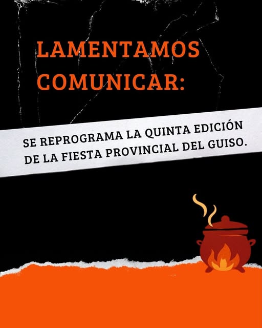 Lamentablemente, reprogramamos la 5ª Fiesta Provincial del Guiso.