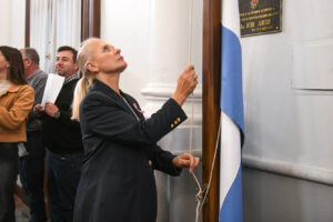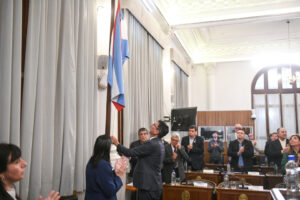 La Bandera Nacional fue izada por la senadora Claudia Silva (Paraná – Más Para Entre Ríos) y la Bandera de Entre Ríos por el senador Gustavo Vergara (Diamante – Juntos Por Entre Ríos).