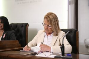 En el recinto de la Honorable Cámara de Senadores, la vicegobernadora y presidente del cuerpo, Alicia Aluani, presidió este miércoles la 16ª Sesión Ordinaria correspondiente al 146º Período Legislativo. Estuvo asistida por el secretario de Cámara de Senadores, Sergio Avero y la prosecretaria, Sara Foletto. La sesión contó con la presencia de 16 legisladores y quorum reglamentario. El senador Martin Oliva (Uruguay – Más para Entre Ríos) justificó la ausencia de su par Patricia Día (La Paz – Más para Entre Ríos).