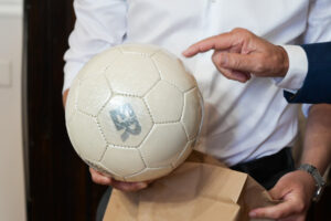 En este marco, se hizo la entrega simbólica de una pelota de fútbol marca Torreón al gobernador Rogelio Frigerio; al secretario general de la Gobernación, Mauricio Colello; y al ministro de Seguridad y Justicia, Néstor Roncaglia.