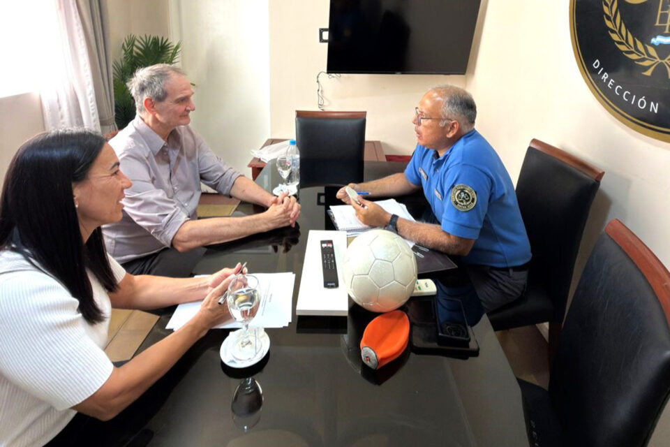 Manteniendo los lineamientos emitidos por el Ministerio de Seguridad y Justicia y la Dirección General del Servicio Penitenciario, se desarrolló una reunión de trabajo con la participación del secretario de Deportes, Sebastián Uranga, y de la directora de Deporte Adaptado, Roxana Villagra, quienes fueron recibidos por el prefecto José Santiago Osuna, director principal de Industria del Servicio Penitenciario de Entre Ríos (SPER).