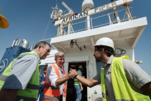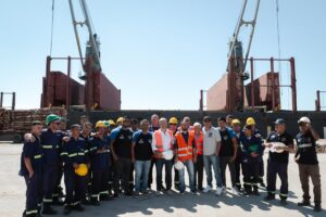 Frigerio visitó el puerto de Concepción del Uruguay, donde se encuentra cargando troncos de pino a granel el buque ultramarino African Piper, donde destacó el potencial portuario de la provincia y celebró la inclusión de Entre Ríos, por primera vez en la historia, en la Hidrovía Paraná-Paraguay.