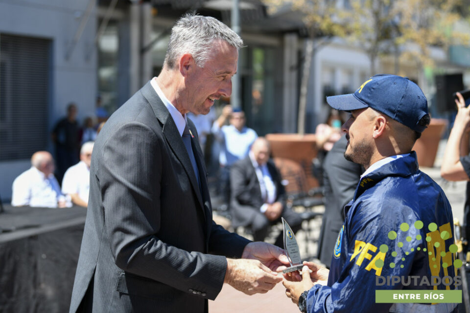 Así, entregó un Diploma de Honor por su destacada actuación al agente Nicolás Gabioud, quien participó en una investigación donde obtuvo elementos probatorios que permitieron la autorización de una ‘entrega vigilada’ desde Paraná a Concepción del Uruguay, que desencadenó la detención de tres personas, el secuestro de estupefacientes, vehículos usados como transporte y dinero en efectivo. En tanto, diversos agentes recibieron medallas al mérito de carácter general, a la destacada actuación, al profesionalismo, a la labor administrativa diaria, al esfuerzo, trabajo y compromiso, y a la superación.