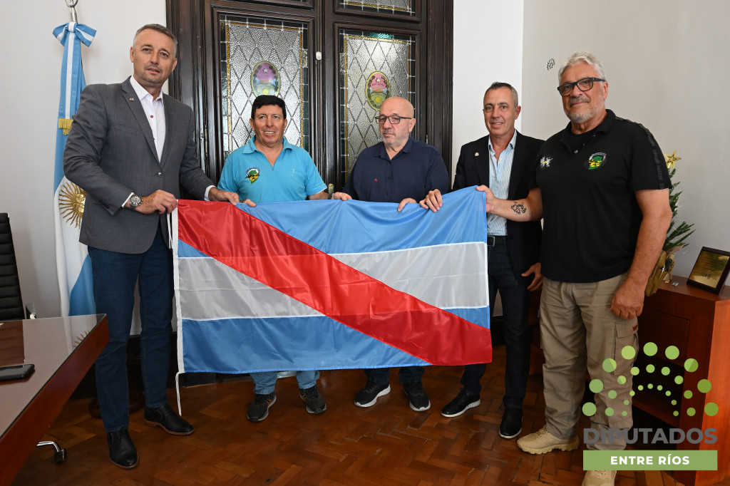 El Centro de Veteranos de Malvinas de Entre Ríos, representado por Omar Godoy, junto a excombatientes británicos, participarán en el proyecto “Aconcagua – Cumbre por la Paz», que se realizará del 5 al 20 de enero de 2026. Se trata de una expedición de altura que implica ascender hasta la cima del pico más alto de América para izar la bandera argentina y desplegar la entrerriana, con el objetivo de llevar un mensaje de unidad, memoria y reconocimiento. Junto al presidente del Centro de Veteranos de Paraná, Oscar Eguía, fueron recibidos por el titular de la Cámara baja, Gustavo Hein, quien les hizo entrega del símbolo entrerriano. Participaron también del encuentro, el diputado Jorge Maier y el veterano de Malvinas Ricardo Álvarez.