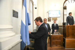 La Bandera Nacional fue izada por el senador Casiano Otaegui (Gualeguay- Frente Juntos por Entre Ríos) y la Bandera de Entre Ríos por el senador Víctor Sanzberro (Victoria- Más para Entre Ríos).