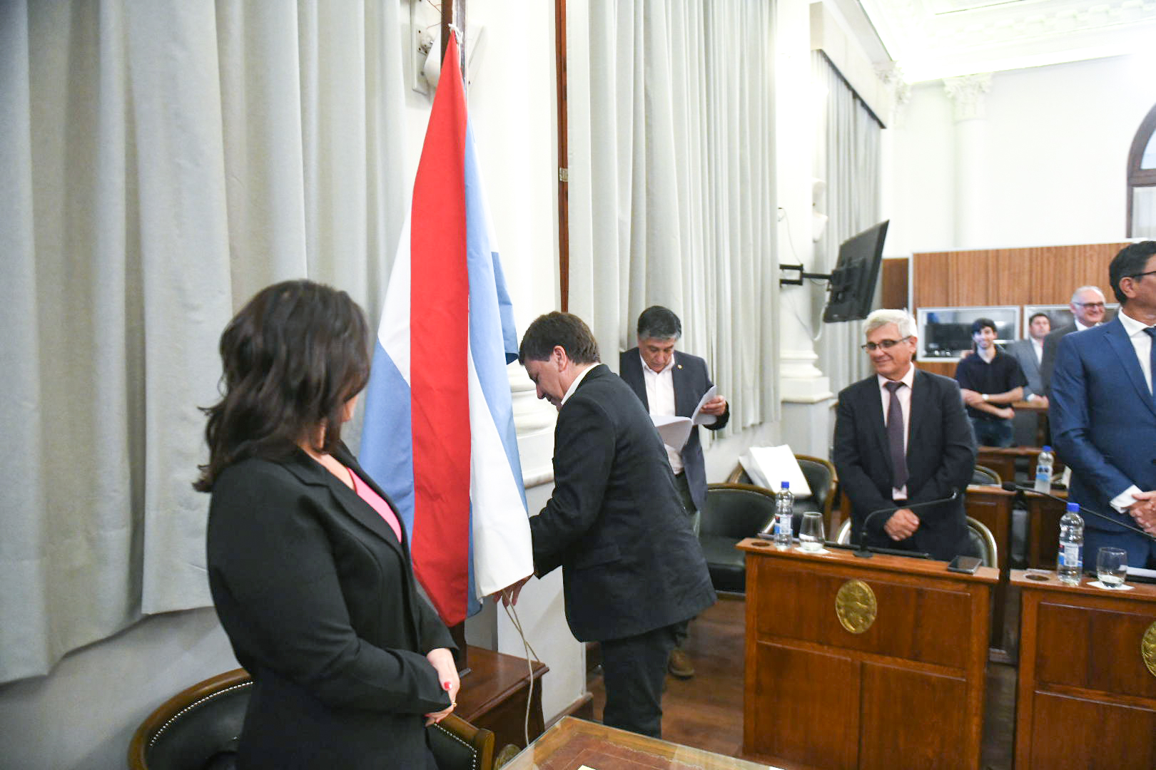 La Bandera Nacional fue izada por Rafael Cavagna (Nogoyá – Juntos por Entre Ríos) y la Bandera de Entre Ríos por Juan Diego Conti (Tala – Más para Entre Ríos).