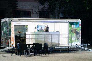 El trailer cuenta con pantallas de alta definición, sistema de sonido e iluminación, espacios modulares para informes turísticos y talleres, y zonas de interacción diseñadas para degustaciones, demostraciones culturales y presentaciones en vivo. Este formato versátil posibilita generar experiencias inmersivas y un vínculo cercano con el público, maximizando el impacto de cada acción promocional.