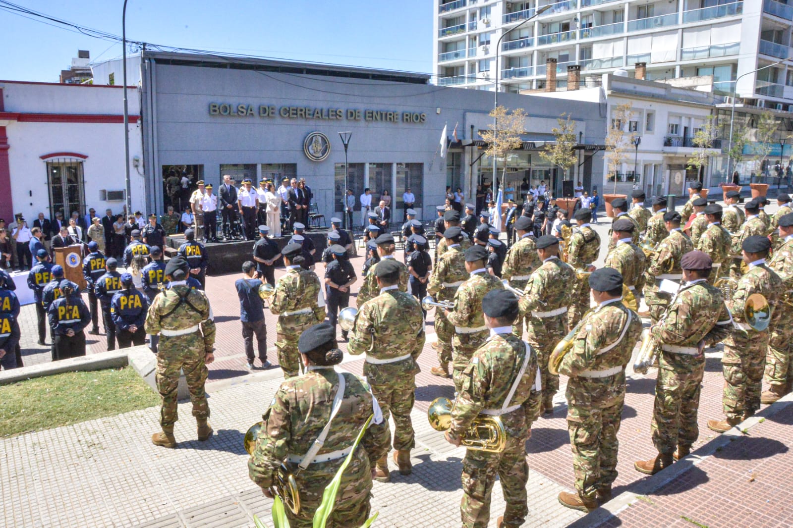 En la ciudad de Paraná, frente a la Virgen de Luján ubicada en Plaza Alvear, se realizó una ceremonia en el marco de la Semana de la Policía Federal Argentina.