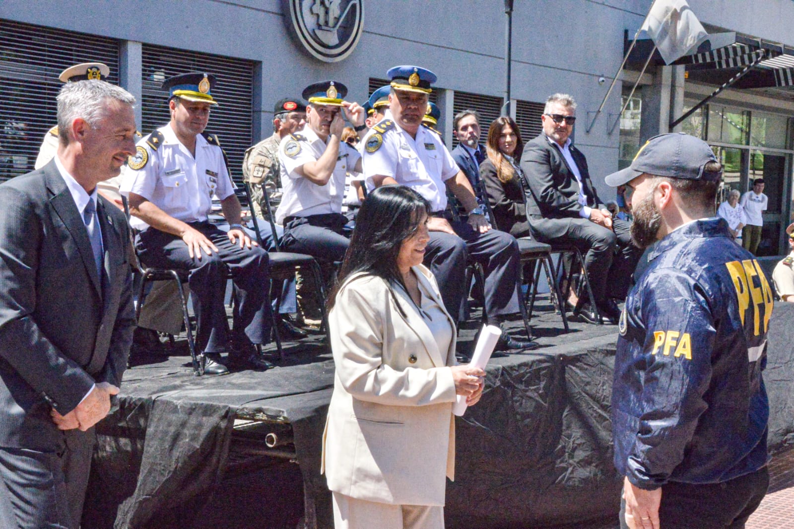 Durante la actividad, las autoridades provinciales y policiales entregaron distinciones al personal de la fuerza por su desempeño durante el año 2025 y realizaron una evocación a los policías federales caídos en cumplimiento del deber.
