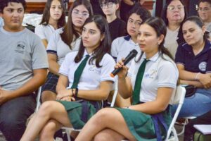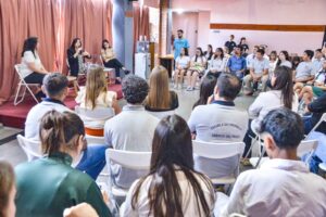 La actividad, organizada por el equipo del Senado Juvenil Entrerriano, se realizó en el salón del Hotel del Círculo de Paraná y consistió en una instancia de diálogo e intercambio que tuvo como protagonistas a los 18 equipos de senadores juveniles de los distintos departamentos de la provincia. Acompañaron a la vicegobernadora las coordinadoras del programa, Claribel García y Eugenia Alasino.