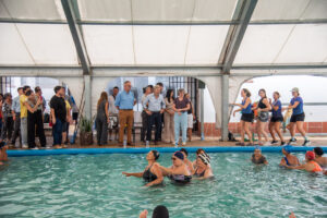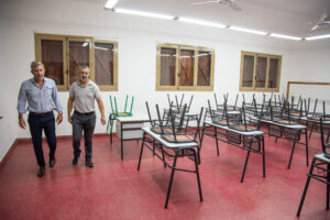 Durante la jornada, el mandatario recorrió el salón principal, el sector de aulas, la cocina y el patio, además de visitar el área de la pileta donde se realizan actividades del programa Acciones de Verano. El gobernador estuvo acompañado por la vicegobernadora, Alicia Aluani; los ministros de Planeamiento e Infraestructura, Hernán Jacob, y de Salud, Daniel Blanzaco; y el presidente del Consejo General de Educación (CGE), Carlos Cuenca.
