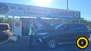 13-12-2025 – PUESTO DE CONTROL VIAL BRAZO LARGO (SECUESTRO VEHICULAR): En la fecha, siendo las 06:10 horas, mientras el personal policial, realizaba control de vehículos y personas, se logró detener la marcha de un vehículo que ingresaba a la provincia, marca TOYOTA, modelo SW4 4×4 SRX 2.8 dominio, conducida por un masculino de 59 años, oriundo del Partido de LOMAS DE ZAMORA – PROV. DE BUENOS AIRES. Seguidamente el funcionario policial le solicita la documentación mínima e indispensable para circular (DNI, Carnet de Conducir, Cédula de Identificación Automotor y Seguro Obligatorio). Luego de verificar en el Sistema de la DNRPA, no se encontró ninguna anomalía, sin embargo al verificar detenidamente la Cédula de Identificación Automotor, se pudo constatar que la misma presentaba signos evidentes de ser apócrifa, ausencia de micro letras y sellos de agua, además la tipografía no es la habitual y por último tampoco reacciona a la luz de Wood (Ultravioleta). Posteriormente se procede a dar intervención al Verificador en turno, quien al observar el número de motor, constata que dicha numeración no se corresponde con la descripta en la cédula. Seguidamente se verificó nuevamente en la página DNRPA, con el número de motor y se pudo constatar que dicho vehículo se encuentra asociado a otro dominio con un pedido de Secuestro de fecha 13/10/2025 por el supuesto Delito de Hurto. Ante las novedades encontradas, se puso en conocimiento al Juzgado Federal de Gualeguaychú, Secretaría en lo Criminal y Correccional quien dispuso el formal Secuestro del vehículo y de la documentación presentada. También se ordenó la correcta identificación del conductor, quedando luego en libertad y disposición de la justicia.