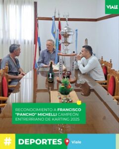 El Presidente Municipal, Dr. Carlos Weiss, junto al Director de Deportes, Prof. Adrián Fontana, recibieron a Francisco «Pancho» Michelli, quien se consagró campeón del Campeonato Entrerriano de Karting 2025, tras imponerse en la serie y la final de la categoría 150 Master C.