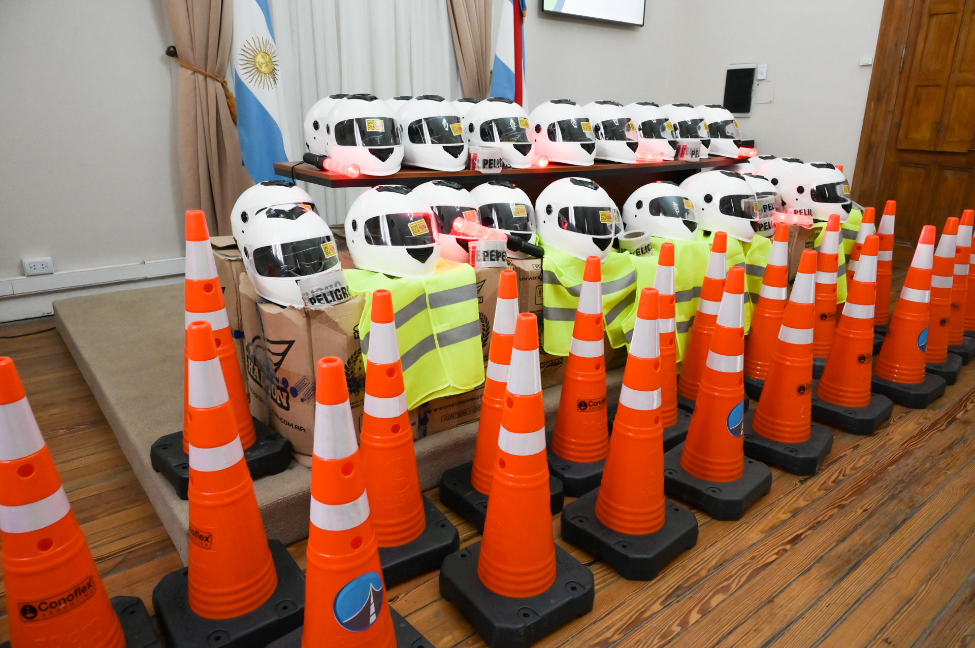 La iniciativa busca dotar de herramientas fundamentales a los agentes municipales para optimizar los controles de tránsito y reducir la siniestralidad vial en el territorio provincial. En total, se distribuyeron más de 50 cascos homologados, además de elementos de señalización y visibilidad.