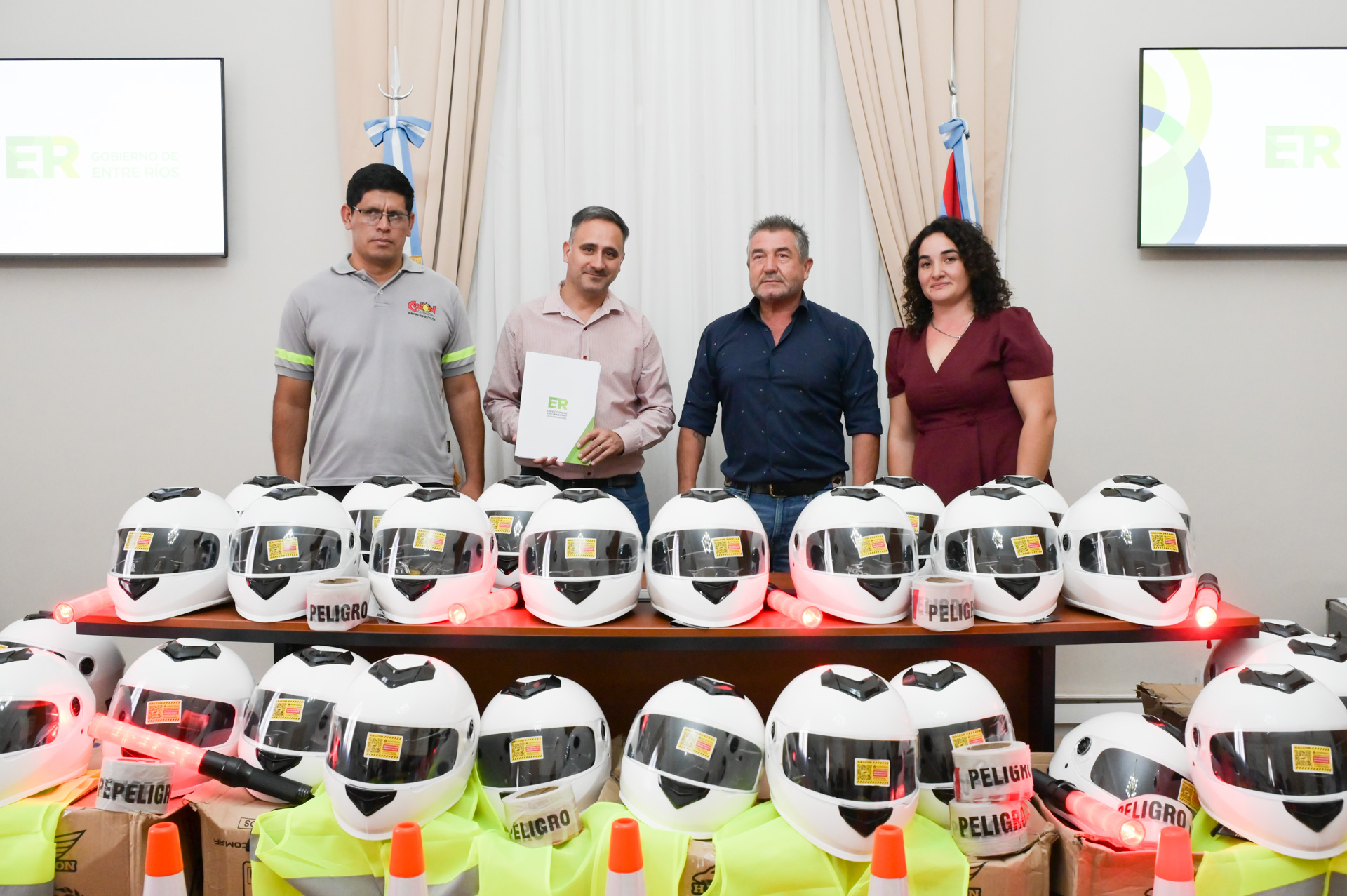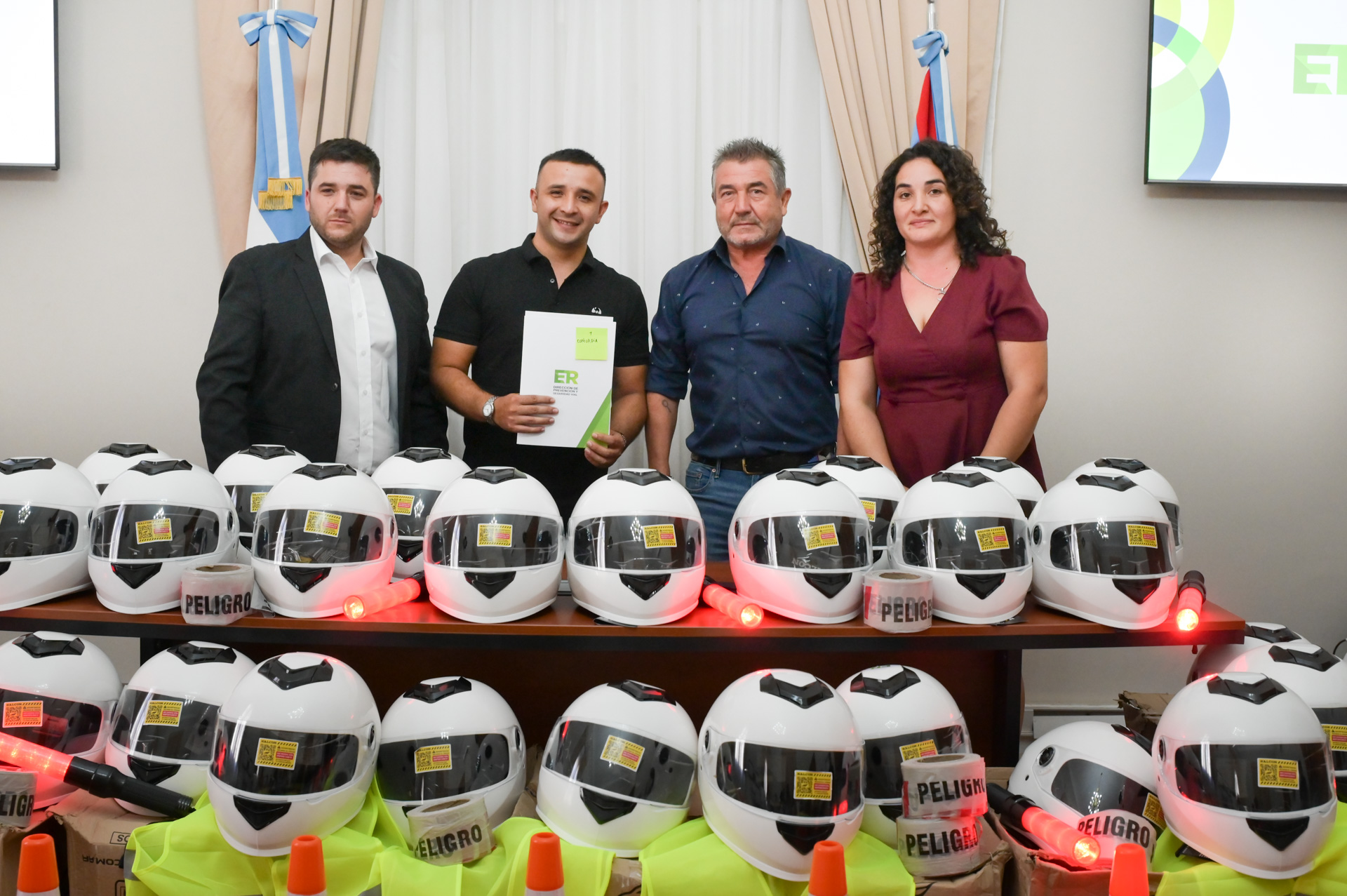 En el marco del Programa de Fortalecimiento Institucional del Observatorio de Seguridad Vial, el ministro de Seguridad y Justicia, Néstor Roncaglia, entregó kits de seguridad y elementos de protección a intendentes y presidentes comunales de diversos departamentos de la provincia.