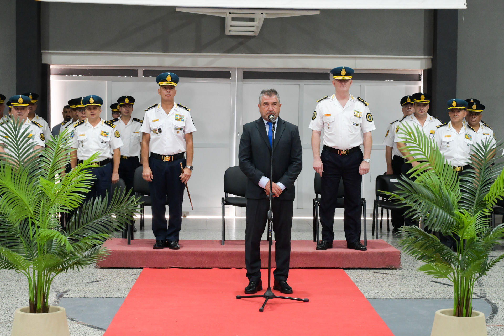 En un acto realizado en la Escuela de Oficiales de Policía Dr. Salvador Maciá, el ministro de Seguridad y Justicia, Néstor Roncaglia, junto al Jefe de la fuerza, oficializó los cambios en Direcciones y Jefaturas Departamentales dispuestos por el gobierno provincial para optimizar la seguridad.