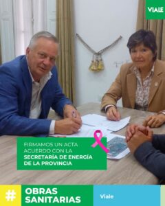 El Presidente Municipal, Dr. Carlos Weiss, rubricó un Acta Acuerdo entre la Secretaría de Energía de la Provincia y el Municipio de Viale, con el objetivo de avanzar en acciones conjuntas orientadas a mejorar la eficiencia y sostenibilidad del servicio de agua potable.