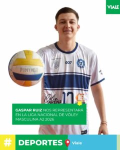 Desde la Dirección de Deportes queremos felicitar y saludar a Gaspar Ruiz, quien representará a nuestra ciudad en la Liga Nacional de Vóley Masculina A2 2026, integrando el plantel de Gimnasia y Esgrima de Santa Fe.
